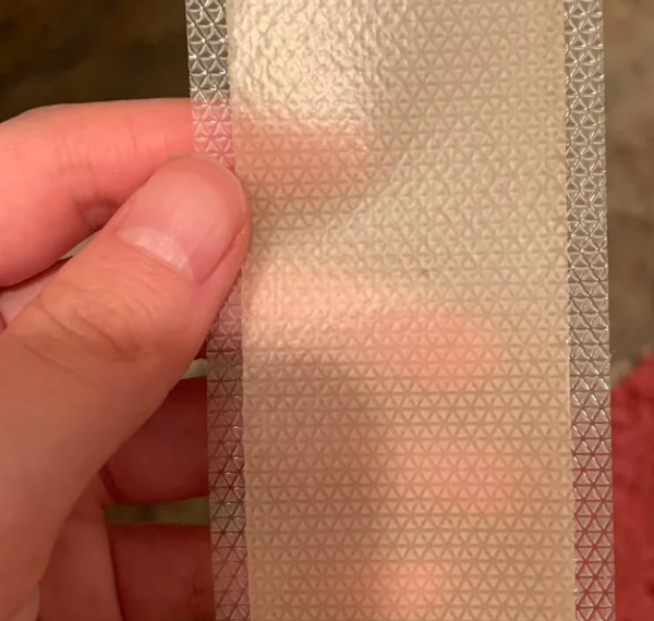 Schneide die Silikon-Narbenpflaster passend zu den gewünschten Stellen (z.B. Lachfalten, Stirnfalten, Nasolabialfalten, Aknenarben) zurecht.